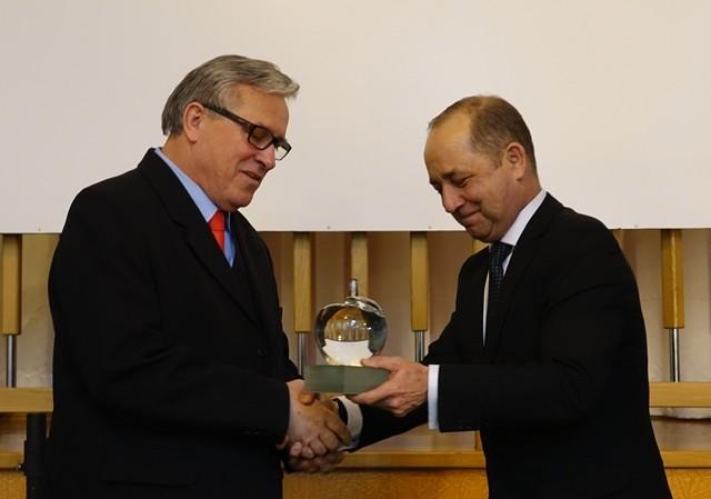 Starosta nowosądecki Marek Pławiak przyznał Kryształowe Jabłko Sądeckie Piotrowi Litwińskiemu - założycielowi i właścicielowi Firmy „Litwiński".